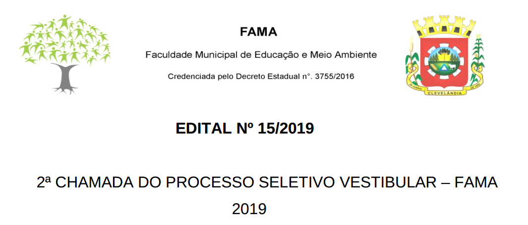 Juliana Guimarães, Presidente da Comissão Temporária do Processo Seletivo de Vestibular da Faculdade Municipal de Meio Ambiente – FAMA, no uso das suas atribuições legais, em conformidade com o Edital nº 11/2019, TORNA PÚBLICO a 2ª CHAMADA VESTIBULAR, […]
