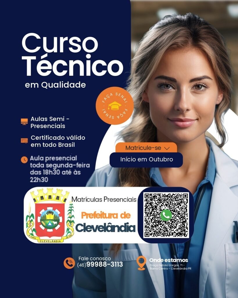 💡 Invista no seu futuro! Garanta já sua vaga no Curso Técnico em Qualidade e destaque-se no mercado de trabalho.