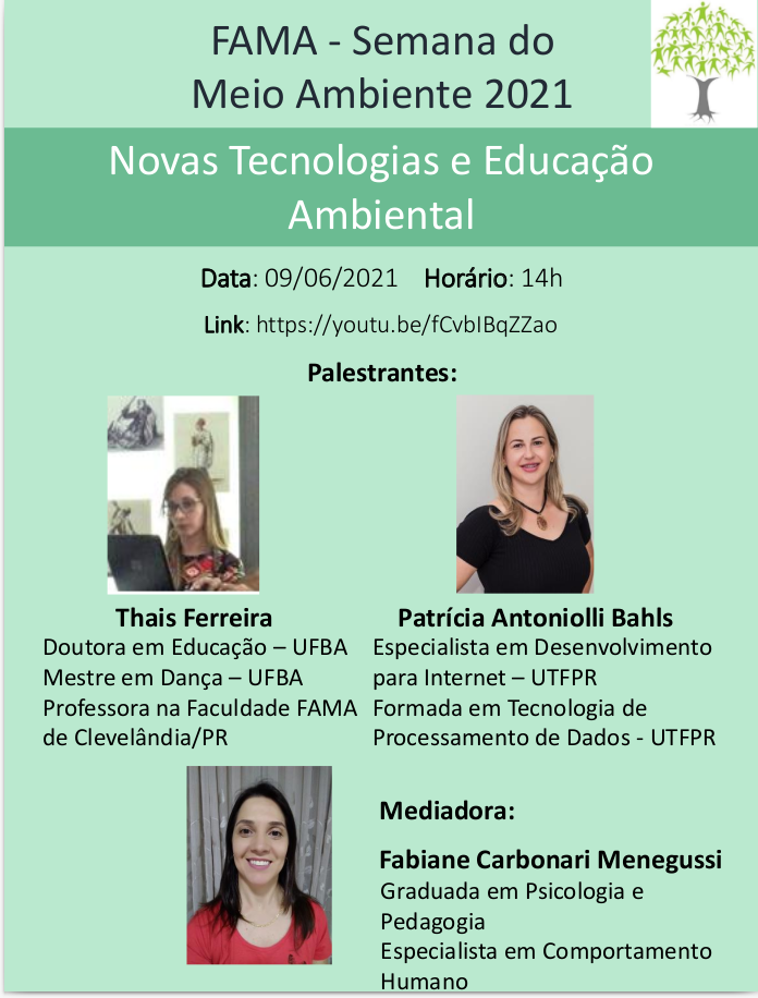 Palestrantes: Thaís de Jesus Ferreira(FAMA), Patrícia Antoniolli Bahls(FAMA)