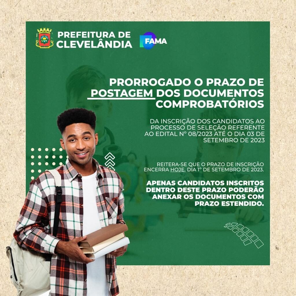 Reitera-se que o prazo de inscrição encerra hoje, dia 1º de setembro de 2023. Apenas candidatos inscritos dentro deste prazo poderão anexar os documentos com prazo estendido.