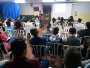 Realizada no Auditório do Colégio Estadual João XXIII, a atividade contou com a presença de professores e estudantes dos cursos de Administração, Pedagogia e Sistemas, que puderam compreender sobre do que se trata o projeto e como cada um poderá participar e contribuir. A professora Giovana, coordenadora do Projeto, apresentou um panorama geral sobre a importância das unidades de conservação para a manutenção da biodiversidade na região, mas também chamou a atenção para a possibilidade de geração de informações ambientais sobre o município, assim como a geração de pesquisas, informações e produtos derivados dessa parceria com os cursos da FAMA.