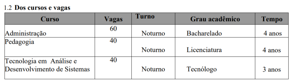 CURSOS DE GRADUAÇÃO EM ADMINISTRAÇÃO, PEDAGOGIA E TECNOLOGIA EM ANÁLISE E DESENVOLVIMENTO DE SISTEMAS