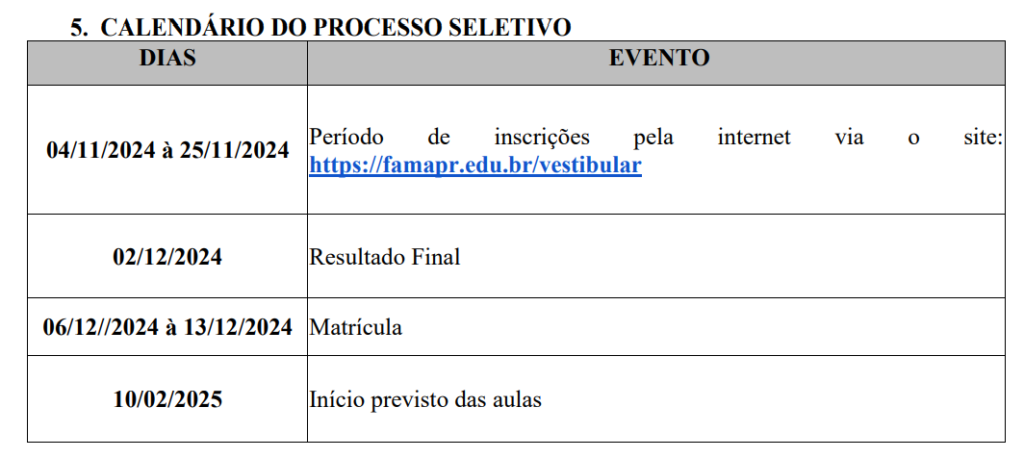 As inscrições serão realizadas por meio do site: https://backup.famapr.edu.br/vestibular